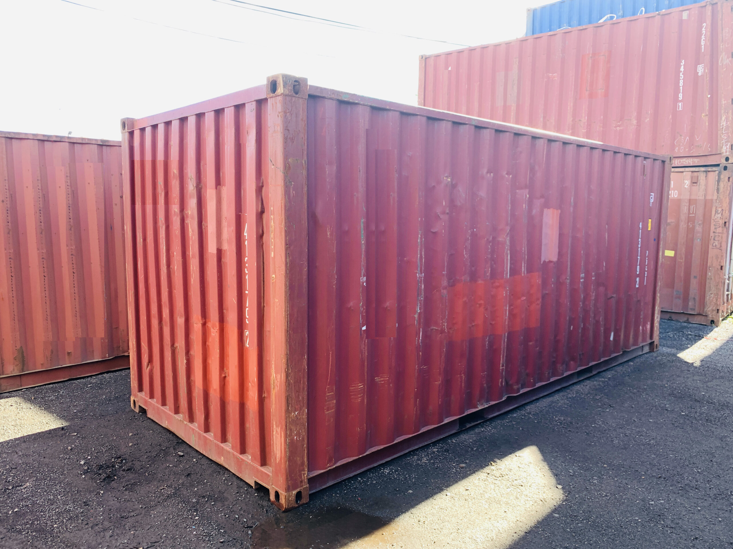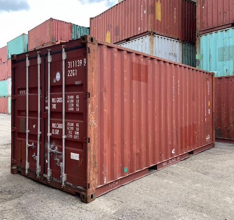 Used Water Tight Standard Shipping Container (8’ 6” Tall) with common cosmetic blemishes such as rust, patches, dents, logos, rippling, markings, and abrasions. Water-tight containers do not have leaks, holes, or damages.