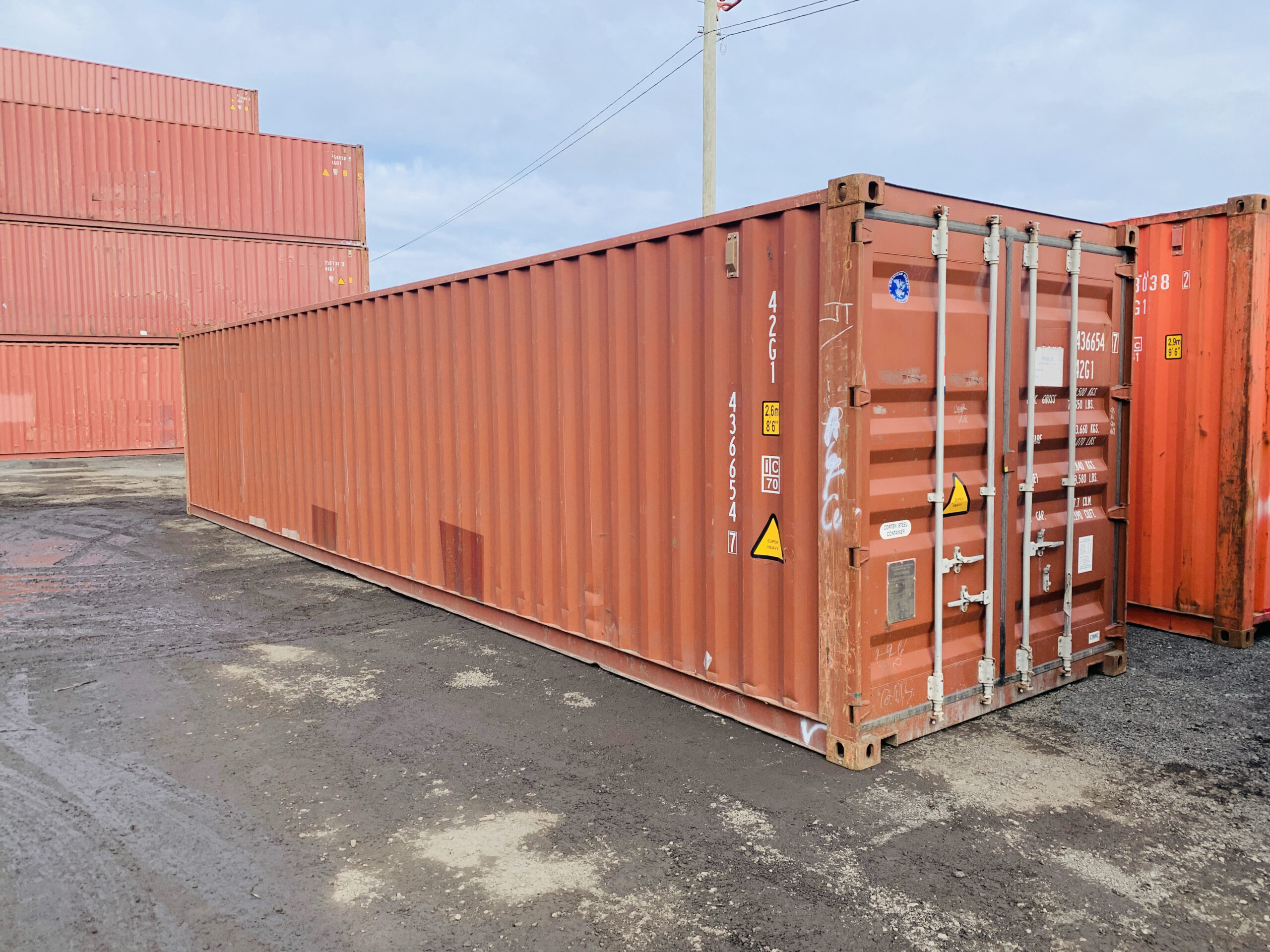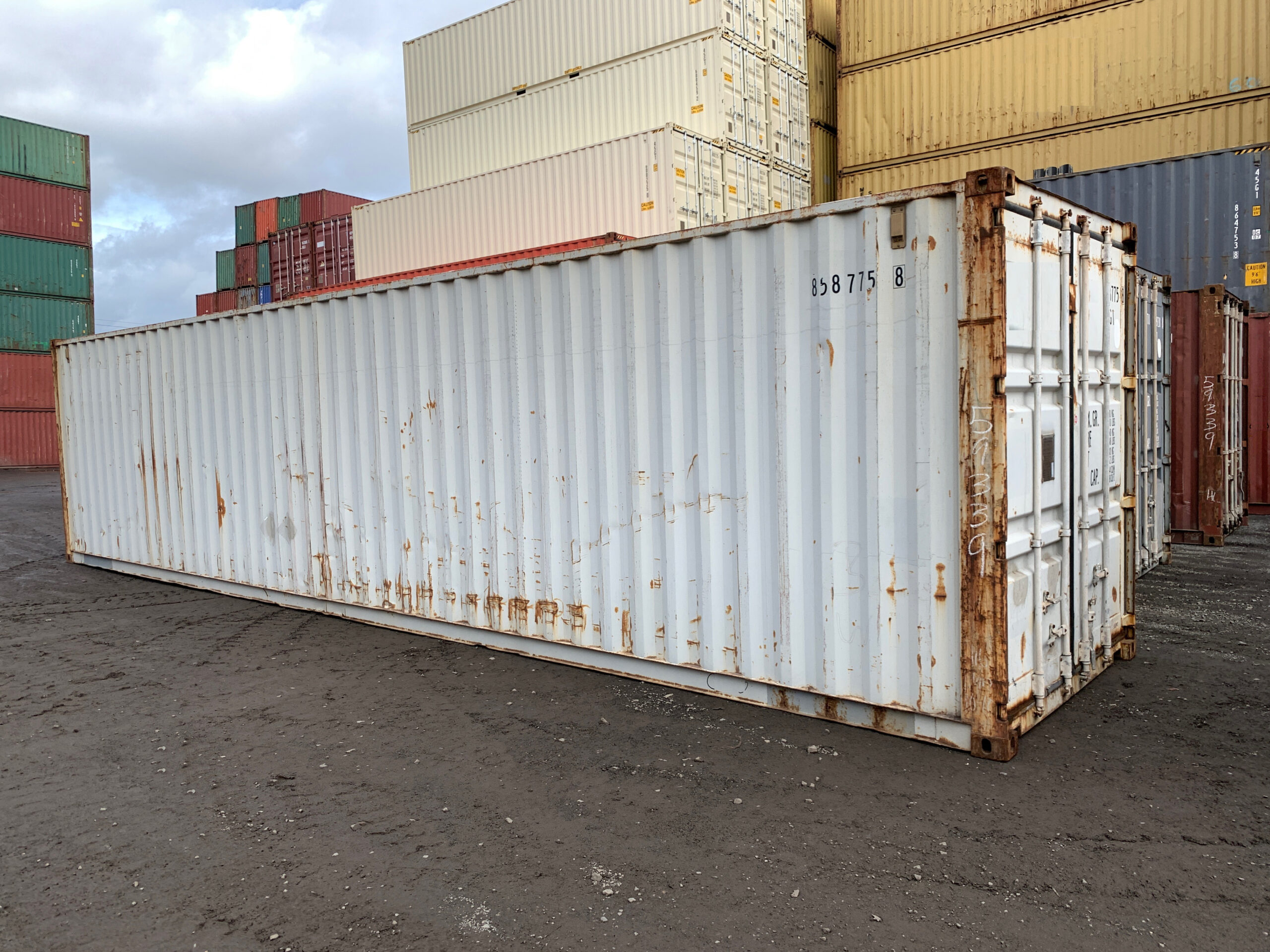 Used Water Tight Standard Shipping Container (8’ 6” Tall) with common cosmetic blemishes such as rust, patches, dents, logos, rippling, markings and abrasions. Water tight containers do not have leaks, holes or damages.