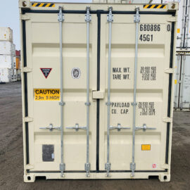 One Time Use / One Trip High Cube Shipping Container (9’ 6” Tall) with minor cosmetic blemishes. Common colors are beige, gray and blue. One Trip Containers are referred as New and are built overseas.