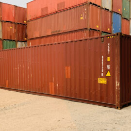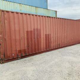 Used Water Tight High Cube Shipping Container (9’ 6” Tall) with common cosmetic blemishes such as rust, patches, dents, logos, rippling, markings and abrasions. Water tight containers do not have leaks, holes or damages.